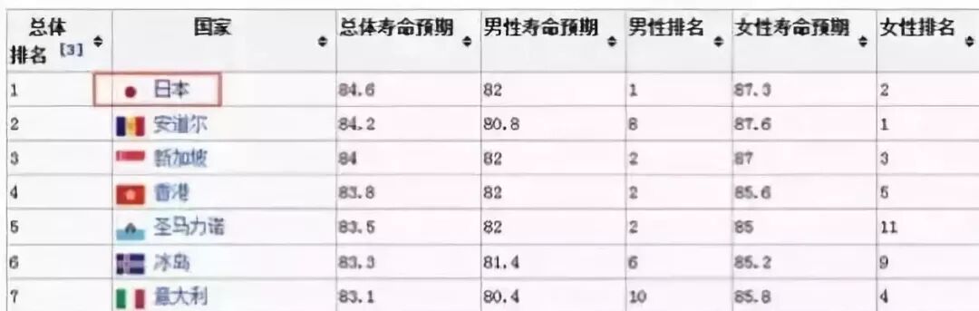 2018年日本男性平均寿命为81.7岁,女性为87.26岁,均比30年前延长了5年左右。同时,百岁以上的老人,已经达到69785人。而中国只有58789人,要知道中国的人口基数是日本的10倍……
