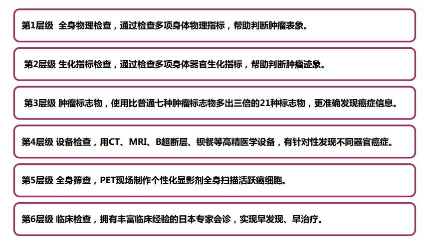 比如说日本的防癌体检,其实之所以日本癌症的存活率高,很大程度上都是因为发现的早。日本的防癌体检可以发现和排查已知300多种早初期癌症,保持着领先世界防癌检查的记录。这种精密防癌检查,可以发现10mm以下的毫米、微米级绝大部分可能的早期癌症或超初期癌症,让癌细胞无处可藏。而世界水平的癌症检查的平均水平是可以发现15毫米以上的癌症。