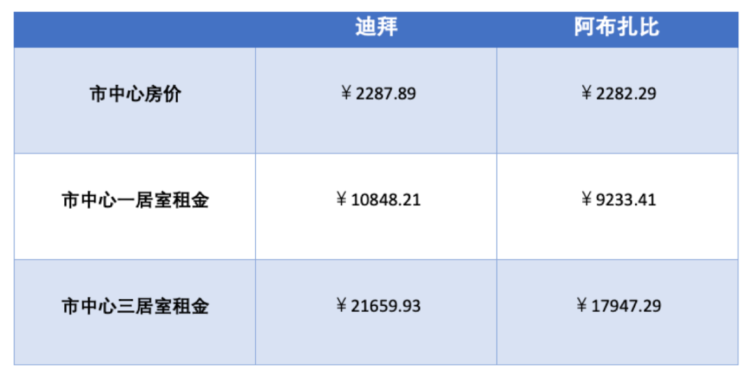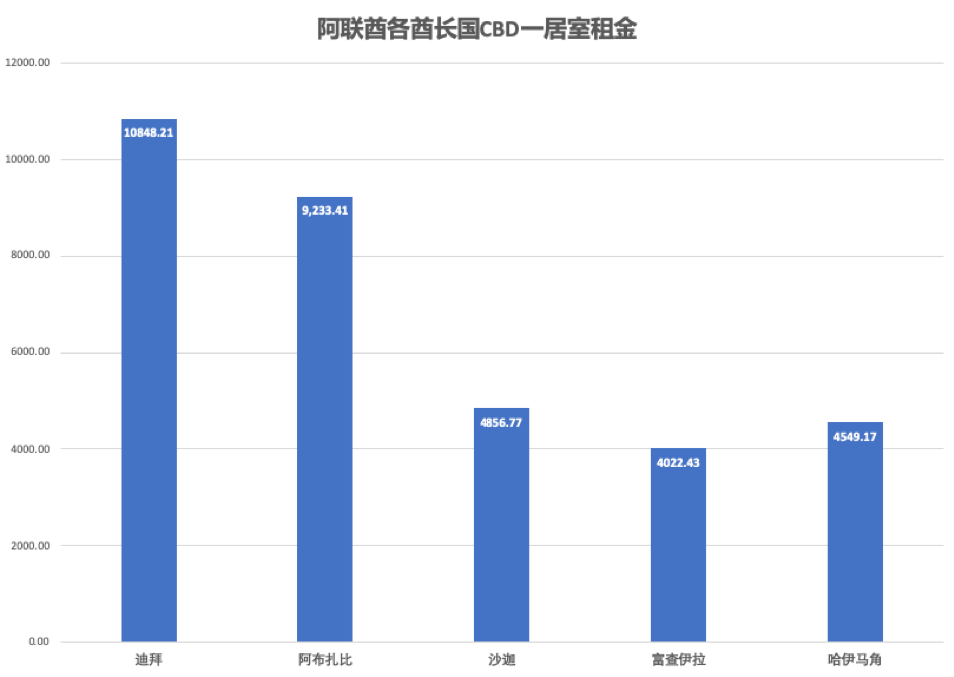 但是一套在迪拜CBD的一居室公寓租金为10848.21元,在阿布扎比却只有9233.41元,比迪拜少了14.89%。