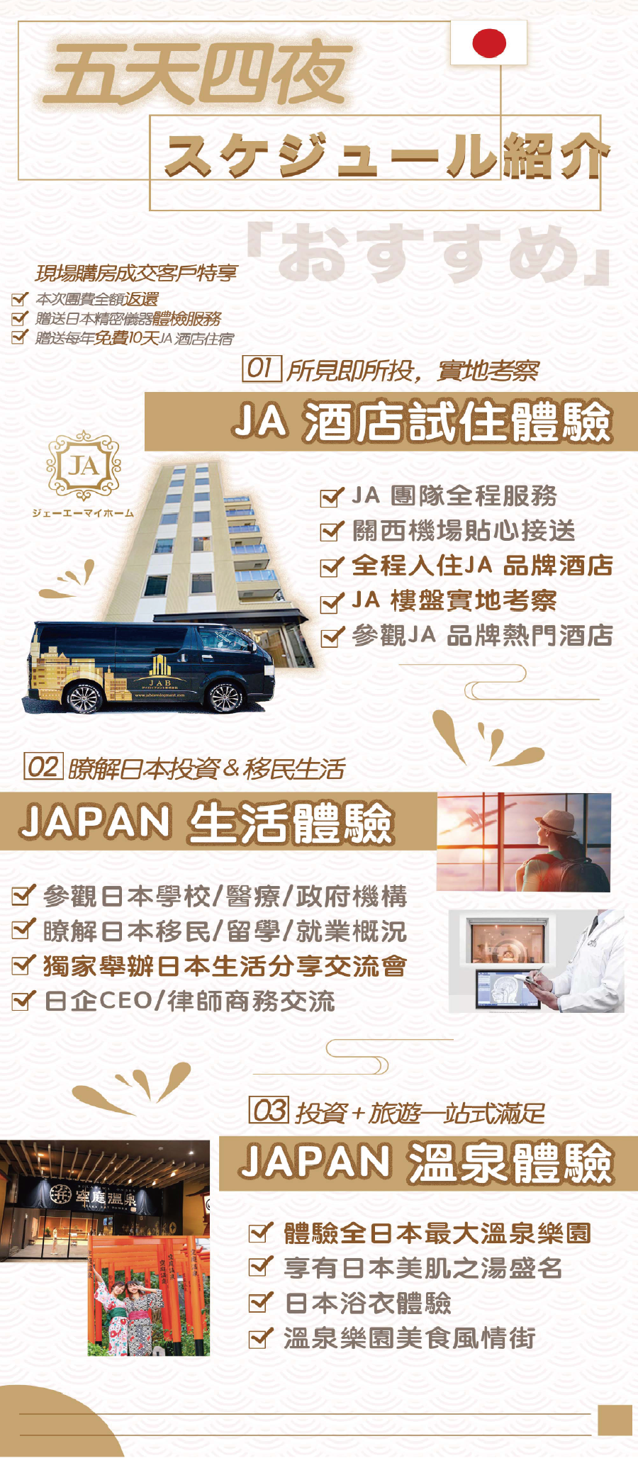 *全程往返机票及燃油税、个人日本签证费用(报团后JA酒店将提供代办服务)