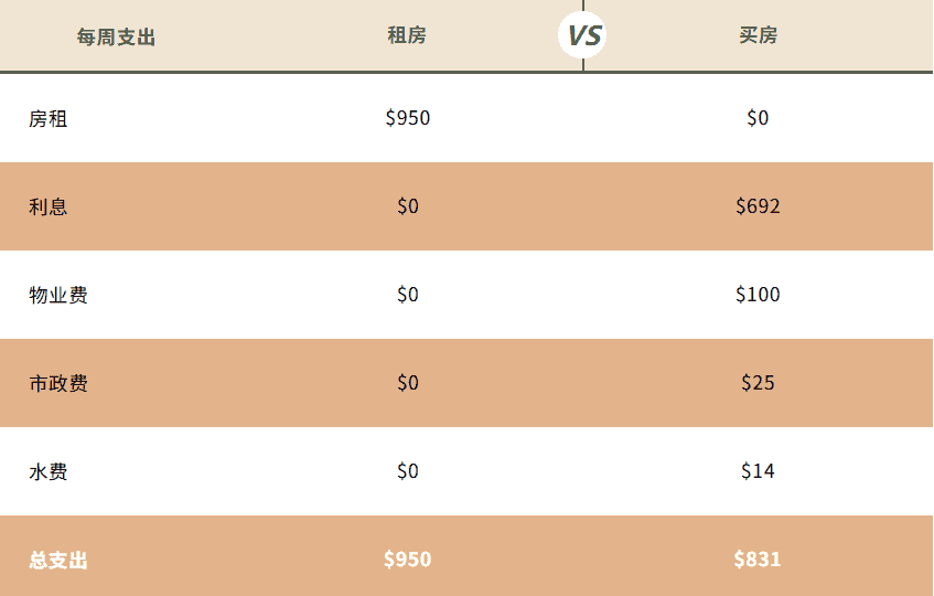 下方表格以两房两卫一车位户型为例,直观展示在优惠利率下,买房成本比租房成本一年低超过6千澳元。