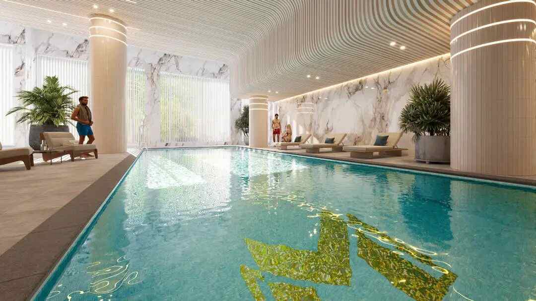 一层配备 恒温泳池、SPA、桑拿、健身房