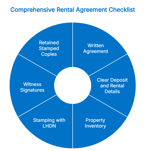 房东和租客应各自保留一份盖章副本。额外副本需加盖印章(10令吉)。这可作为双方约定条款的明确证明。