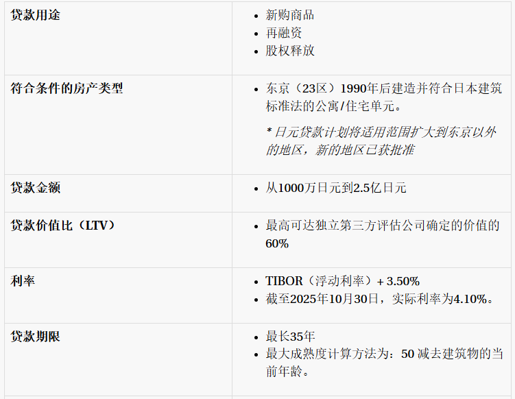 所有贷款均以第一抵押权作担保,并符合日本《放贷业务法》(MLBA)的规定。