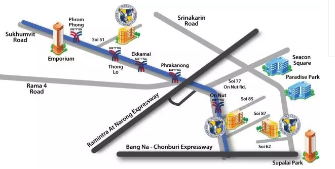 曼谷EkamaiInternational School :伊甲迈国际学校创立于1946年,最初只有四名学生。1957年,学校建立了第一栋教学楼,用来教育英语。该校现在转变成为专业的国际学校,为学生提供最为有效的教育,并在1998年获得了WASC的认证。