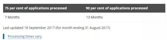 然后每个月移民局官网会更新的审理时间其实就是给出了两个标准,就是审理完成75%和90%的申请所花费的时间。并且这个时间是从申请递交当天开始算的,而不是从签证人员分配到这个申请的时间。
