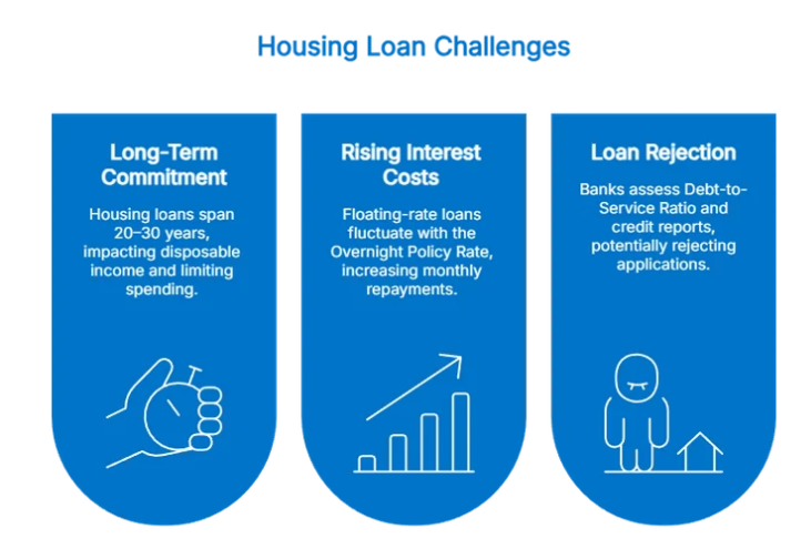 虽然申请房屋贷款可以让购房者分期付款并保留现金用于其他用途,但这需要谨慎考虑。长期还款、利率上涨的风险以及贷款被拒的可能性都是需要考虑的关键因素。通过了解这些挑战并做好相应的规划,购房者可以有效地管理贷款,并在马来西亚做出明智的房产决策。
