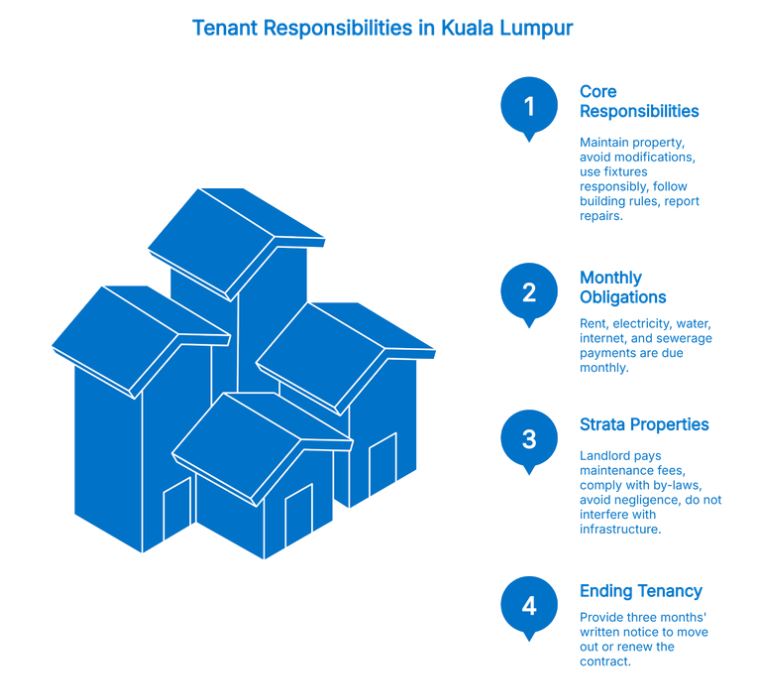 在吉隆坡租房意味着要承担一系列责任,以确保您拥有顺利的居住体验并与房东建立良好的关系。