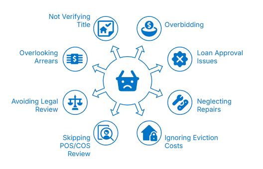 - 在拍卖日之前寻求法律审查:律师可以发现销售公告 (POS) 和销售条件 (COS) 中隐藏的问题。