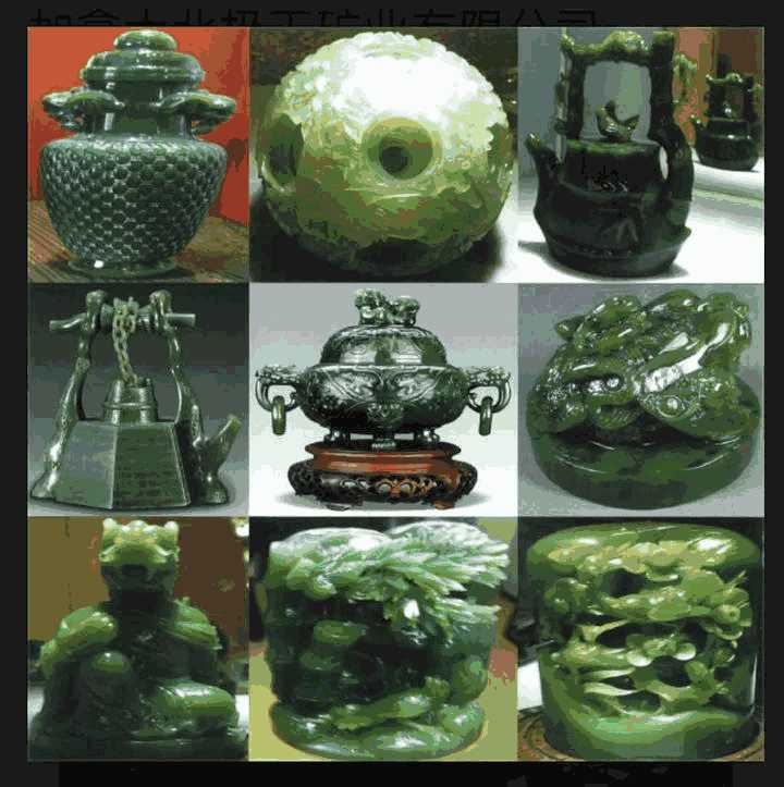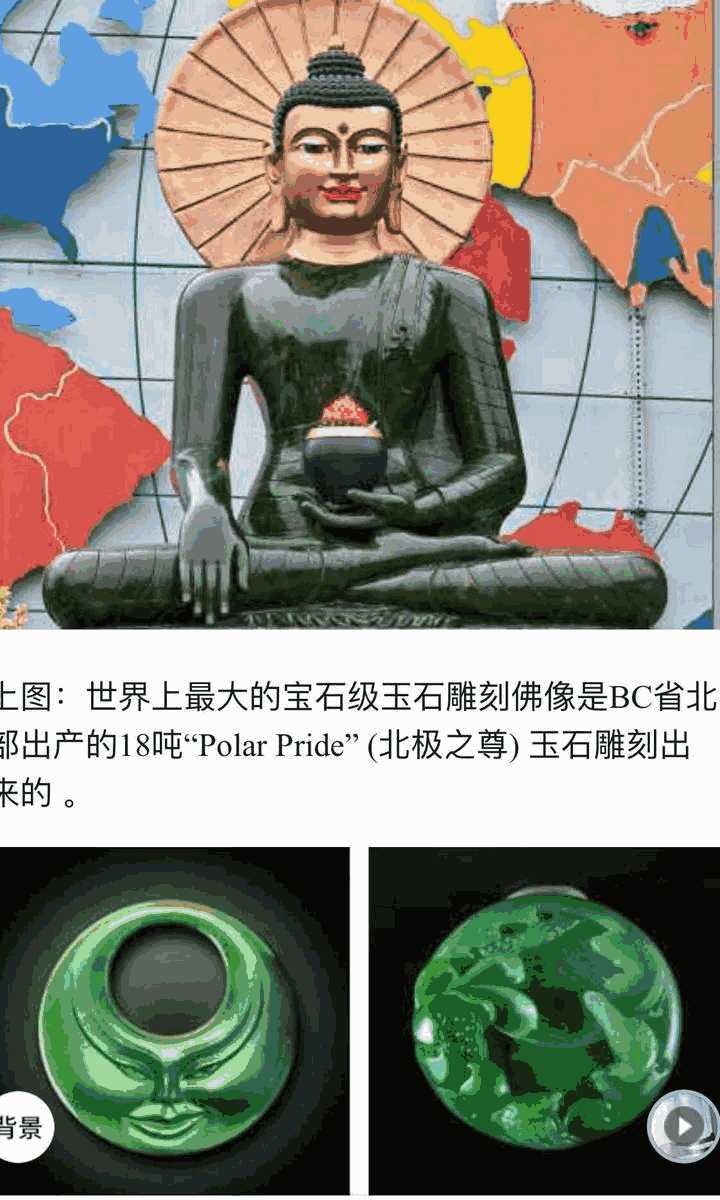 爱。与新疆玛纳斯玉相比,具有产量大、质地更均一、块度大、颜色鲜艳等特点。由于原材料的供应,上世纪80年代到90年代,中国从加拿大进口了数百吨加拿大碧玉,这批碧玉具有体量大、绺裂少、色泽艳丽等特点,此批碧玉弥补了中国大陆碧玉原料供应不足的状况,由于都是山料,加拿大碧玉的产出体量很大,每块有4到5吨。北京、扬州、河南加工制作了一批以此为原料的玉雕作品。这些作品大多器型较大且质地完整。
